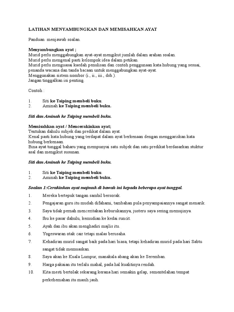 Latihan Menyambungkan Dan Memisahkan Ayat Pdf